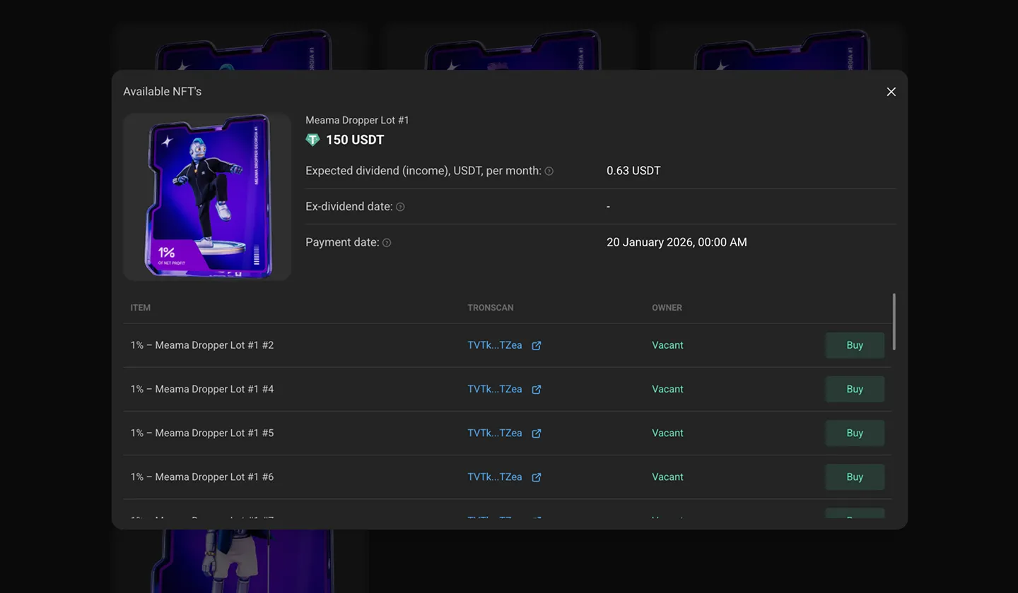 - Investors buy NFTs equivalent to a Meama Dropper.