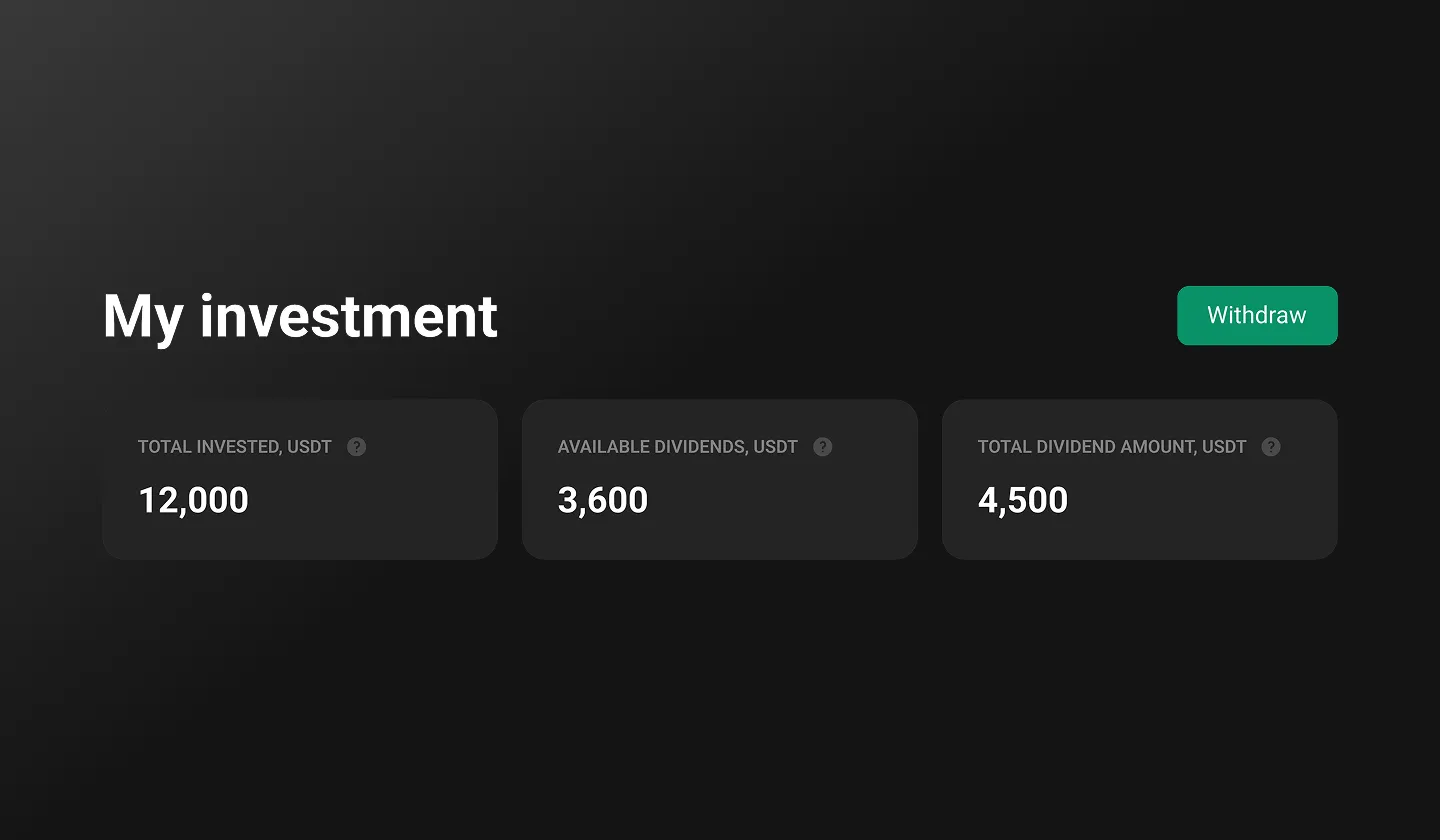 - Purchase: Investors select NFTs with suitable nominal value starting from 150 USDT, which is equivalent to 1% ownership of a single lot.