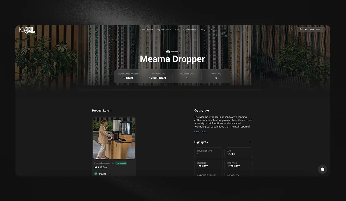 MonShare by Meama is a unit of Meama Beverage Company enabling it to invest in Meama products such as capsules, to-go cafes Meama Collects and self-service coffee vending machines Meama Droppers. As a product, MonShare by Meama is a Tron-based blockchain investment service, offering low risks and high returns.