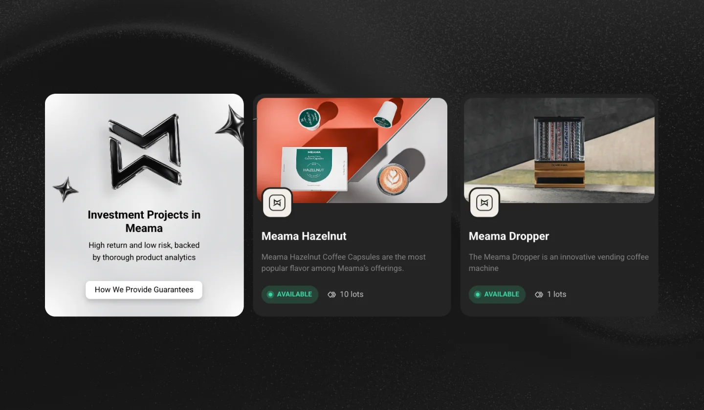 - Meama Hazelnut Coffee capsules: the most popular flavor among Meama’s offerings. This project has the highest return now: up 20% per three months.