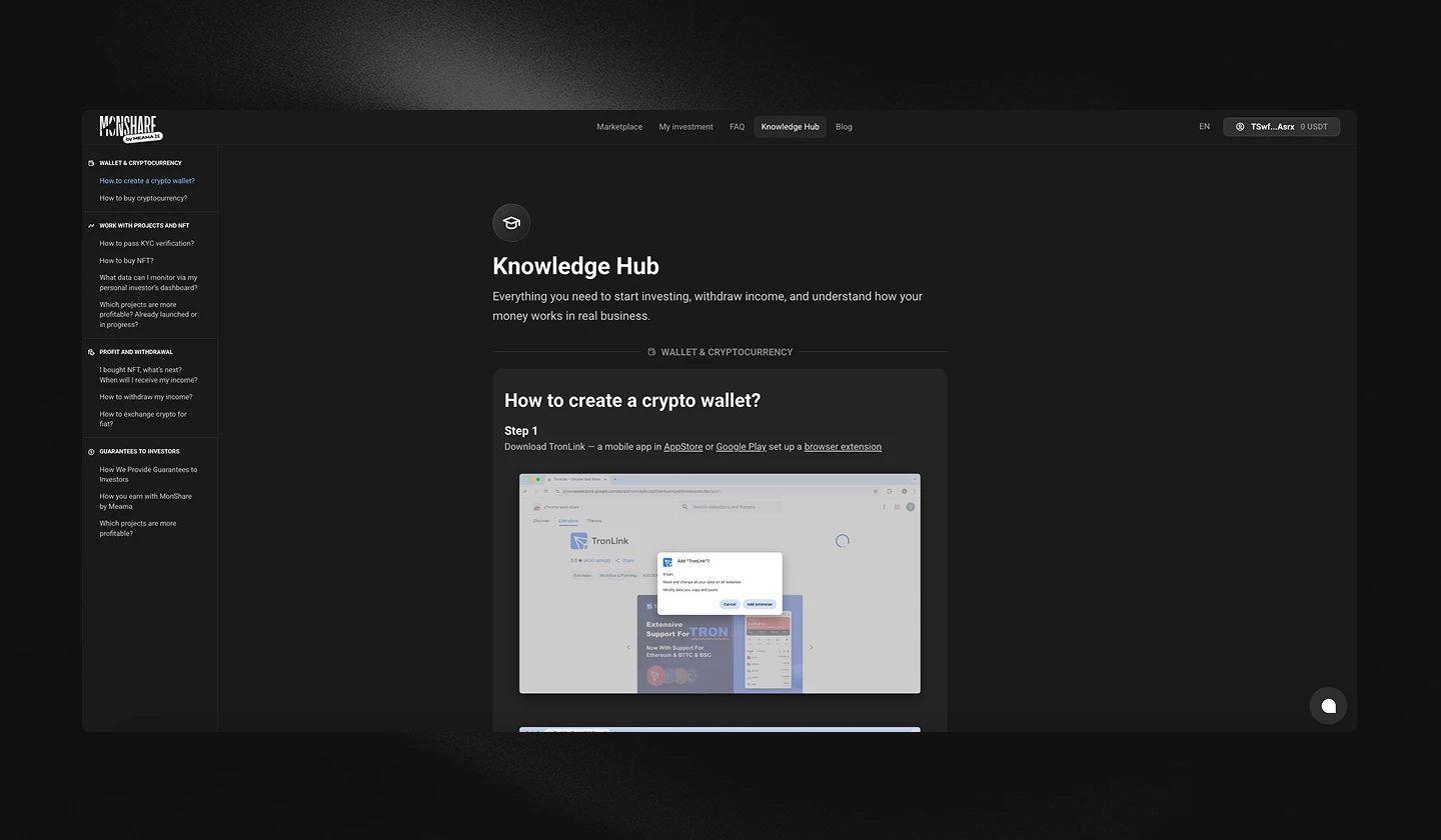 When you enter the platform, you’ll be asked about your investing experience. If you’re a novice investor, the platform will guide you to the Knowledge Hub, where you can find answers and advice on how to use MonShare by Meama. You can return to the Knowledge Hub anytime by clicking the menu button.